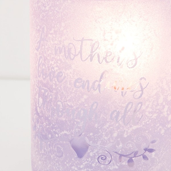If you are looking for the perfect Mother’s Day gift for the special lady in your life, the brand-new A Mother’s Love Scentsy Warmer could be it. A beautiful glass warmer in the most stunning lavender-lilac shade; it features a metal wire carry handle, a wax melt plate, and the words, “A mother’s love endures through all” inscribed in a decorative font.