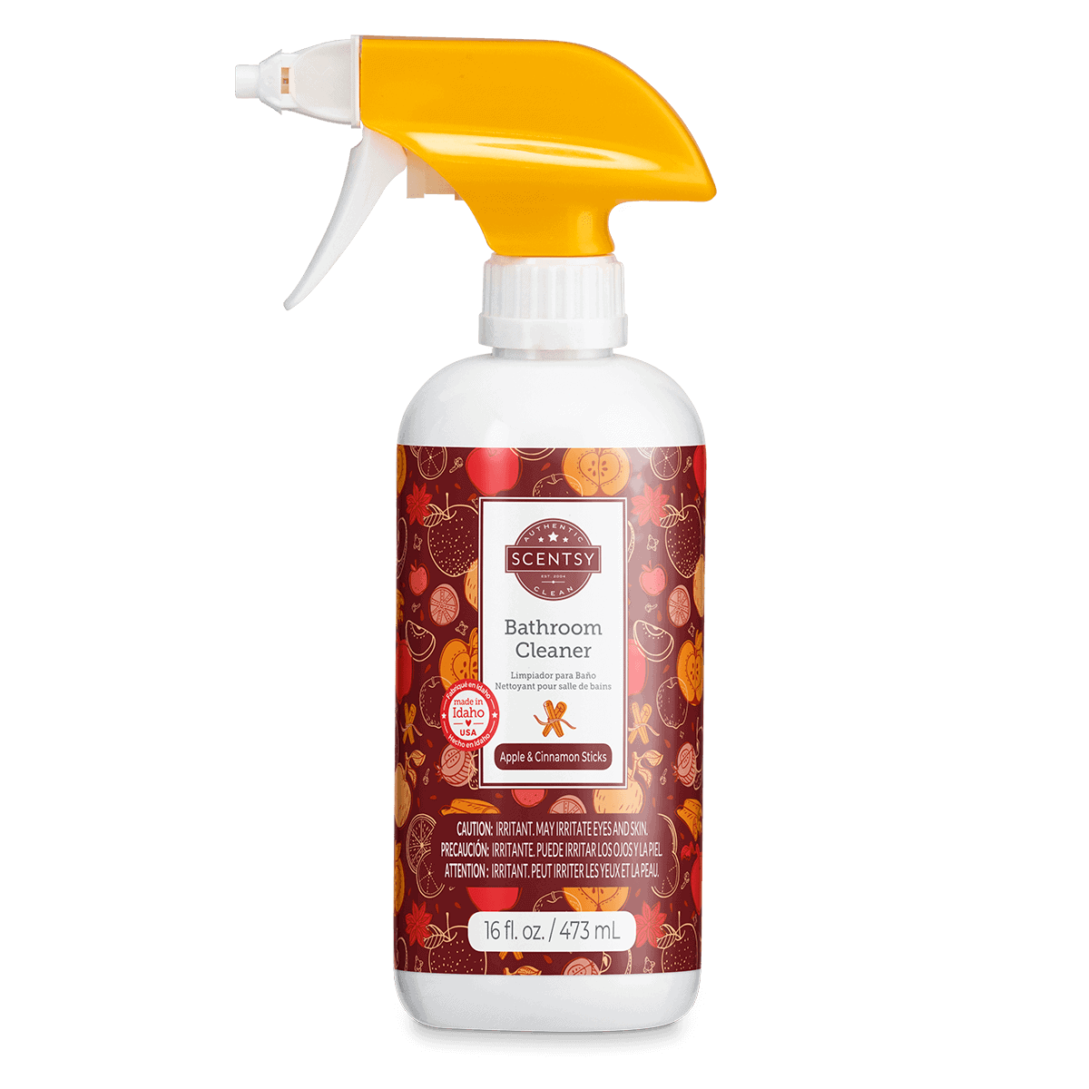 Take the chore out of cleaning this Halloween with Apple & Cinnamon Sticks Bathroom Cleaner. Beautifully scented with Scentsy fragrance, this powerful plant-based cleaning spray will leave your bathroom surfaces sparkling clean, while delicately fragrancing them with the enchanting aromas of spiced white pumpkin, sweet apple peel, and a splash of woody oak.
