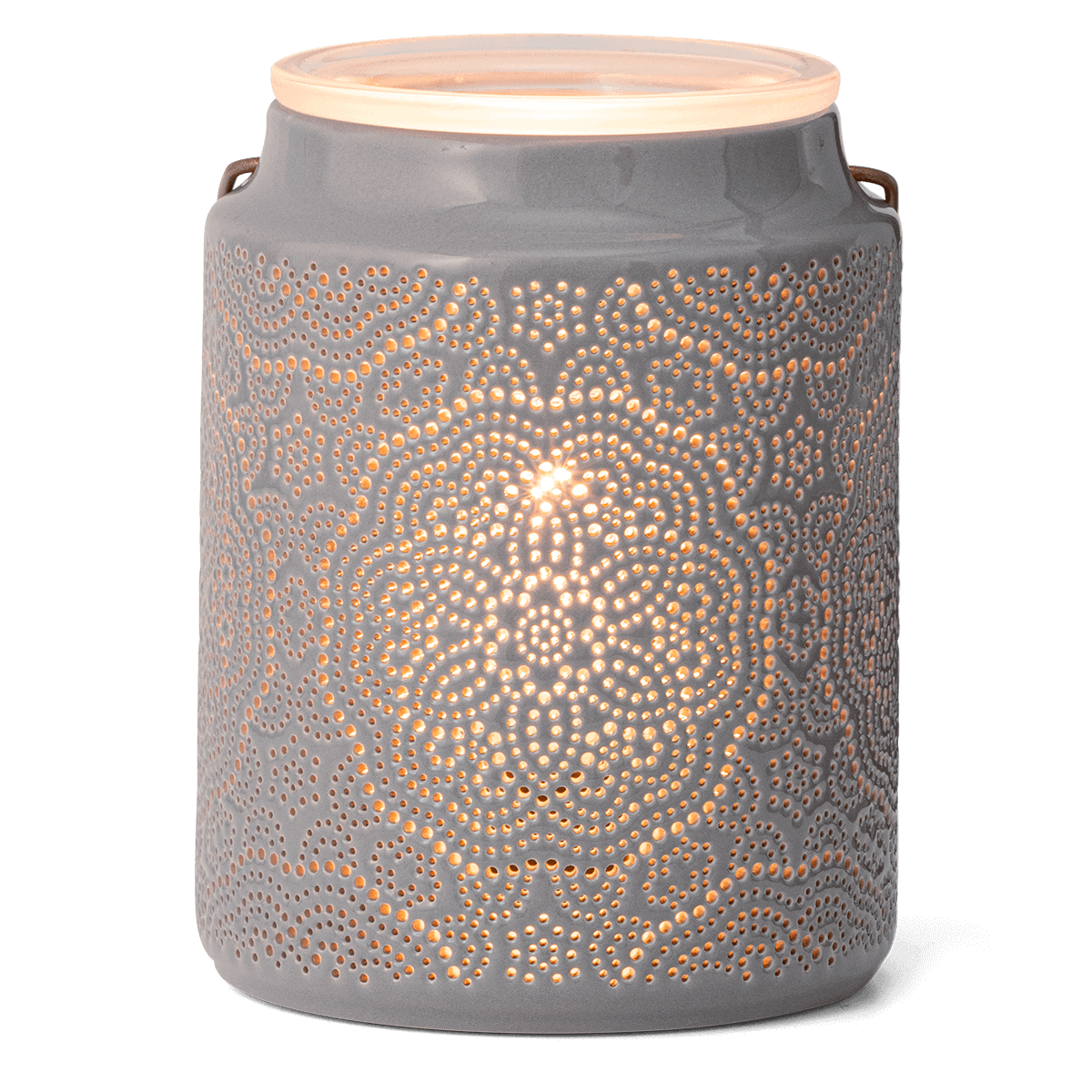 Head to the Moorish palaces of Morocco with the Aziza Scentsy Warmer. With more than 5,000 pin holes creating its floral motif, this premium wax warmer will make a striking addition to any desktop or side table. It is an object of incredible beauty.
