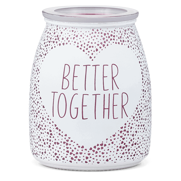 Spread the love with the Better Together Scentsy Warmer. A brand-new release for the coming quarter, this gorgeous wax warmer sparkles with tiny pink love hearts and features the words ‘Better Together’ that stand out beautifully against a white love heart.