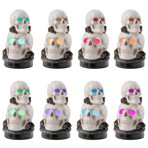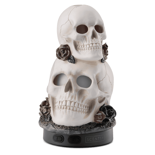 The Bone & Blossom - Scentsy Diffuser is not your average décor — it’s the dramatic, darkly beautiful statement piece your Halloween or Día de los Muertos display has been craving. Standing at 9" tall, it showcases two stacked skulls adorned with sculpted roses, blending gothic edge with elegant detail.