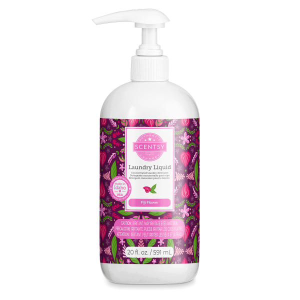 Fiji Flower Laundry Liquid is here! And if you love fresh, fruity, floral fragrances such as pink plumeria, pear blossom, and green apple, you will adore this brand-new washing detergent by Scentsy. Thanks to its powerful 6-enzyme formula, it lifts hard-to-remove stains without damaging delicate fabrics and promises to leave your laundry cleaner and fresher than ever.