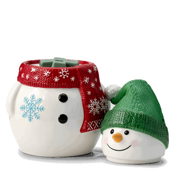 We love the Looks Like Snow Scentsy Warmer! This charming ceramic warmer features an element heating system and projects a beautiful snowflake pattern onto nearby surfaces. Standing at 22cm tall and hand-painted with festive details, it showcases a snowman sporting a patterned red and white scarf, a green hat and a joyful smile.