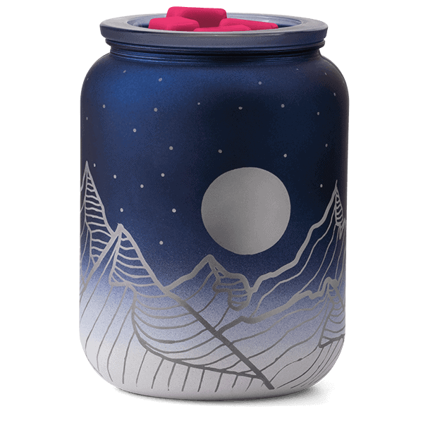 The mountains are calling! This beautiful warmer transports you to a serene mountain getaway, where moonlight shines bright on a cloudless night perfect for stargazing.