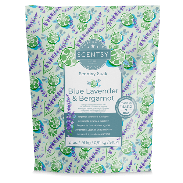 Indulge in the ultimate relaxation experience with the Scentsy Soothe & Soak Bundle, featuring luxurious Body Cream and Scentsy Soak in our new Blue Lavender & Bergamot fragrance.