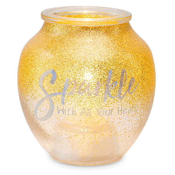 A dazzling addition to any desktop, windowsill, or reception desk, this special Scentsy Warmer is crafted in glass, beautifully bedazzled with gold glitter, and elegantly embossed with the words, ‘Sparkle With All Your Heart’ in a decorative font. The perfect gift for any occasion, this enchanting warmer keeps on giving.