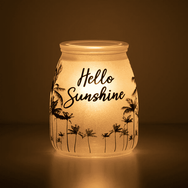 Transport yourself to a sun-soaked paradise with the Summertime Scentsy Warmer. Surrounded by palm trees on a frosted glass finish, this friendly message gives you permission to let your summer self shine. Embrace the essence of the season as you relax and unwind in the comforting glow of this tropical-inspired warmer.