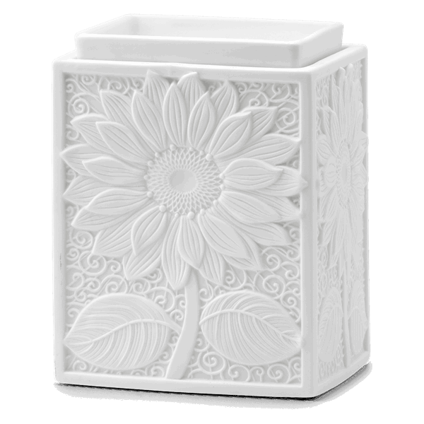 Bring a little sunshine into your home or office space with this stunning Sunburst Scentsy Warmer. Featuring a beautifully embossed sunflower design, this 16cm ceramic warmer glows softly when lit, brightening any corner of your home or workplace. Its warm white finish and detailed petals bring a cheerful yet elegant feel to your space—ideal for desks, bedside tables or anywhere you’d like a gentle lift.