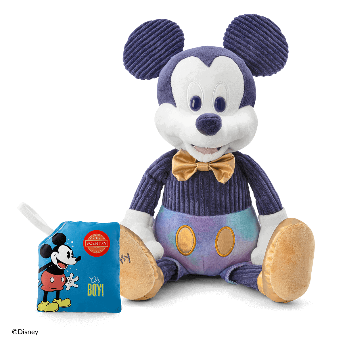 Introducing the Walt Disney World 50th Anniversary celebration: Mickey Mouse Scentsy Buddy, a huggable and iconic companion that brings the magic of the celebration to life! Join Mickey Mouse as he celebrates the golden anniversary of Walt Disney World with his EARidescent outfit, shimmering with enchantment and joy. With his signature red shorts, yellow shoes, and a touch of sparkling gold, he embodies the spirit of this momentous milestone.