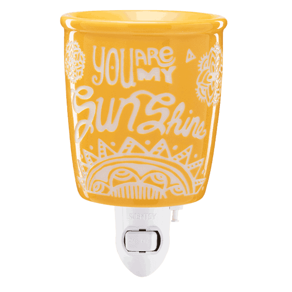 Designed for daily use with your favourite Scentsy Wax Bar, this fabulous Mini Warmer melts wax gently without producing flames, soot, or smoke. It delivers layer upon layer of lush fragrance, and you can take it with you wherever you go. You are my Sunshine, my Scentsy Sunshine, you make me happy, when skies are grey!